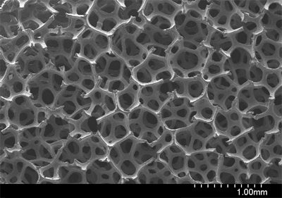 Thickness: 1.2 mm Density: 320 mg/cm2 Pore Size: 580 microns 典型SEM图像1 / 典型SEM图像2 |