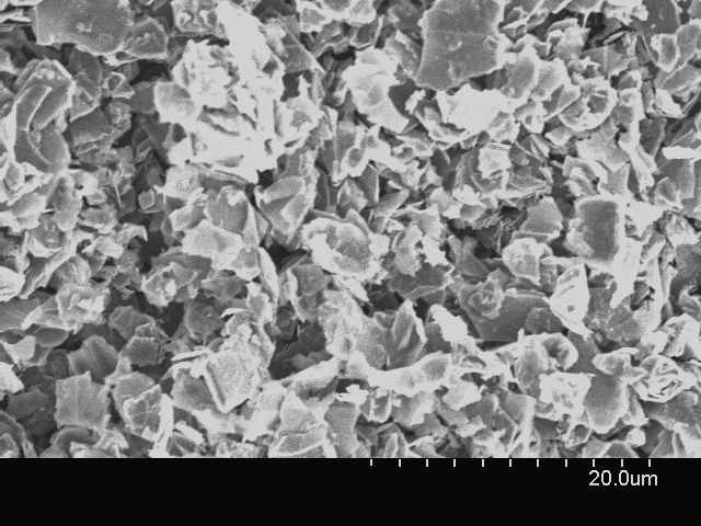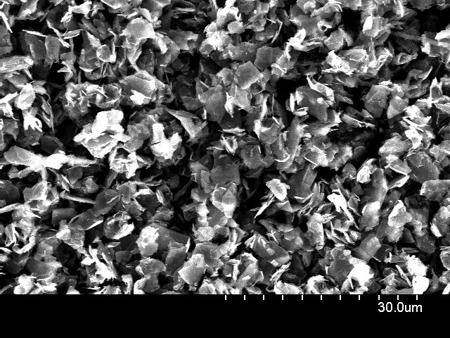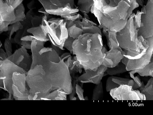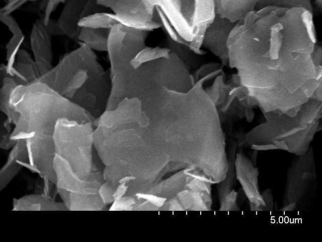 Dry powder Grade AO-4 Specifications: Specific surface area<15 m2/g Color: Black Purity: 98.5% Average flake thickness: 60 nm Particle (lateral) size: ~ 3-7 microns. 典型SEM图像 |